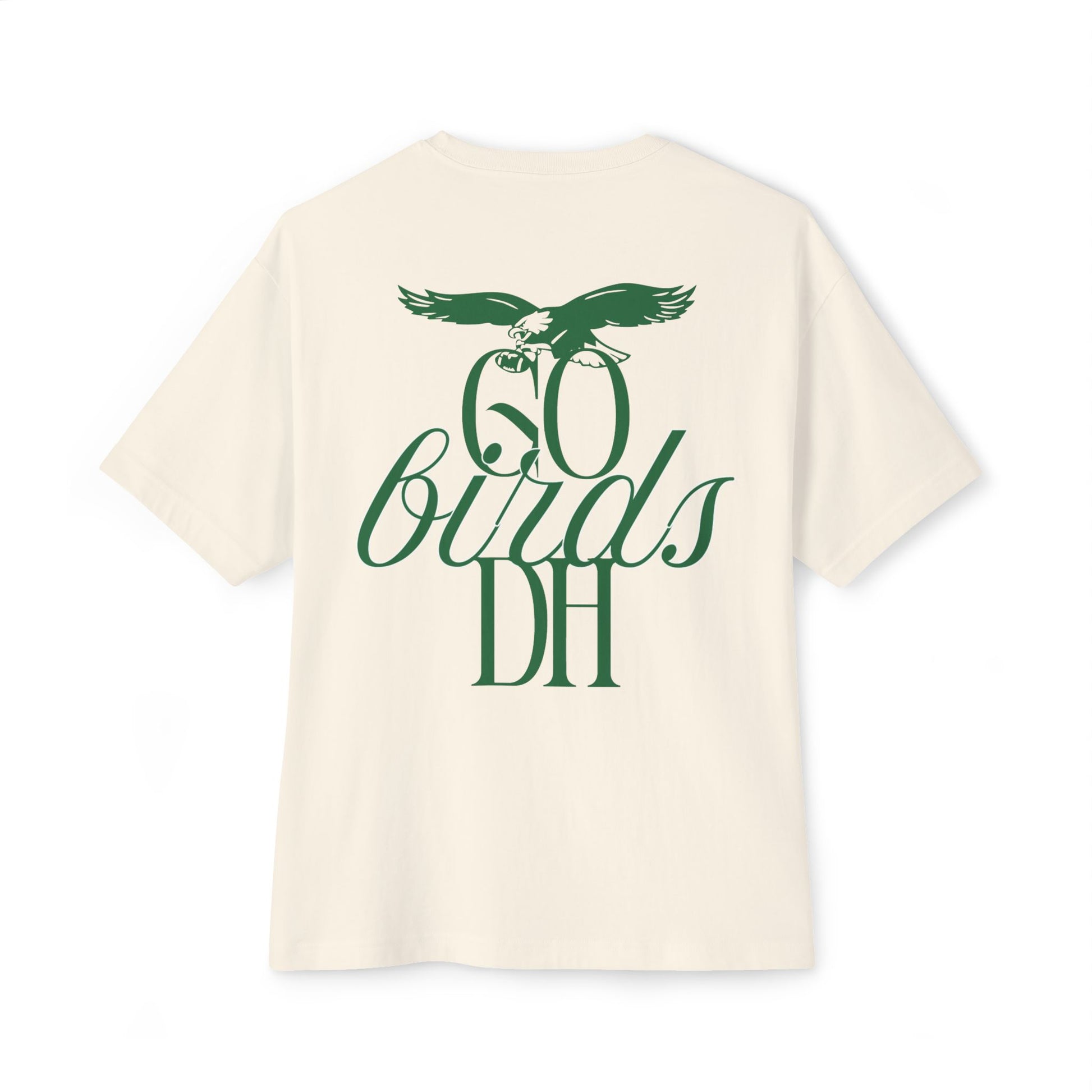 Wear your Philly pride loud and soft. This boxy tee carries the grit of game day — the rumble in the stands, the cold air outside Lincoln Financial Field, the chorus of “Go Birds” after a clutch play. It hangs relaxed over jeans or layered under a jacket, giving you that effortless, off-duty sports look while still reading unmistakably Eagles. The oversized cut lets you move and cheer without fuss. It ages into your routine: becomes that worn-in favorite you reach for on tailgate mornings, weekday commutes, and every Sunday when the team takes the field.