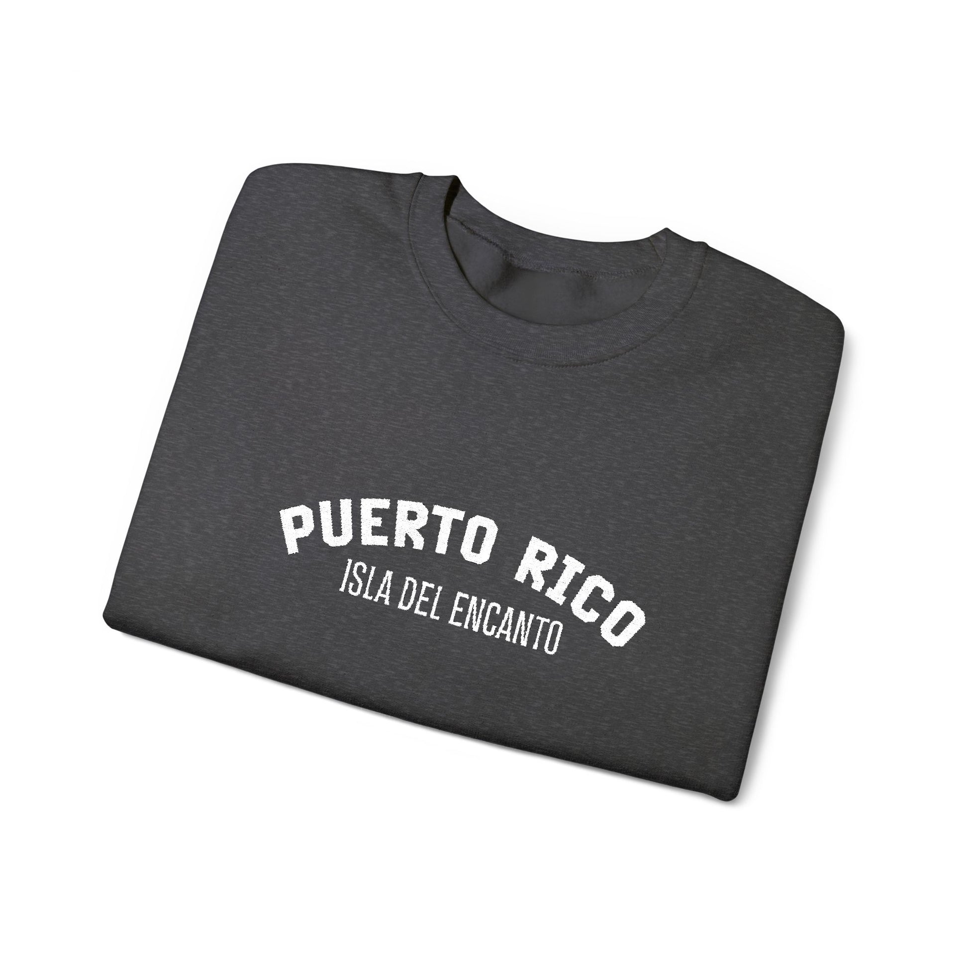 PUERTO RICOOOOOOOO!!! Soft, lived-in comfort with a quiet island heartbeat. This crewneck settles like a warm memory — brushed inside for gentle warmth, ribbed collar that keeps its shape, and a clean chest embroidery that reads like a hometown shout-out.